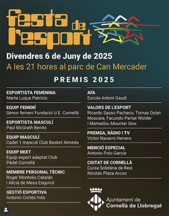 El parc de Can Mercader torna a ser escenari de la Festa de l’Esport de Cornellà. Un acte on es reconeixeran els mèrits i trajectòries d’esportistes, entrenadors i entitats del municipi baixllobregatí. L’esdeveniment es divideix en dues parts amb el lliurament dels premis individuals i els especials.