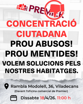 El malestar veïnal al nou barri de Llevant de Viladecans ha esclatat de manera definitiva. L'Associació de Veïns i Veïnes del Barri de Llevant ha convocat una concentració ciutadana el proper dissabte 18 d'abril, a les 11:00 hores, a la Rambla Modolell, 36, per denunciar el que consideren una situació "insostenible" amb la promotora Premier España.