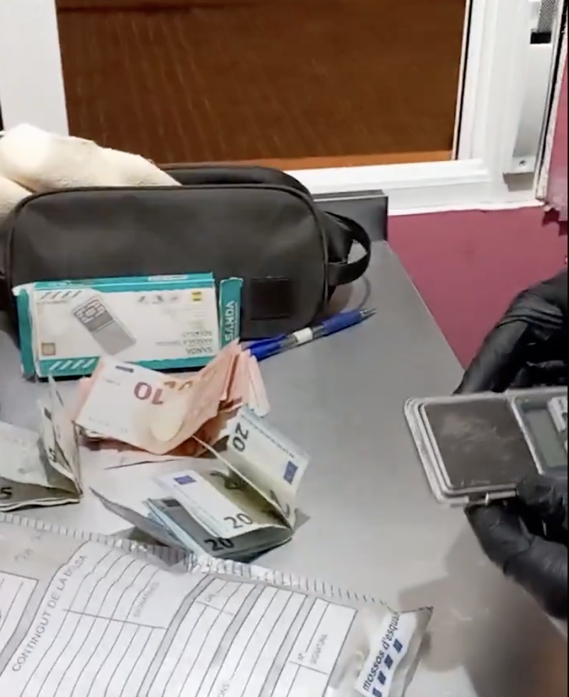 Un cop van obtenir tots els indicis necessaris, els agents van dur a terme una entrada i escorcoll, el 21 de gener, tutelada pel Jutjat de Guàrdia de Cornellà de Llobregat. Durant l’escorcoll els agents van localitzar més d’un quilogram d’haixix en diverses formes, diners en efectiu provinents del lucre del tràfic de drogues, una bàscula de precisió per pesar la droga i embolcalls per tal de confeccionar les dosis que subministrava als consumidors.
