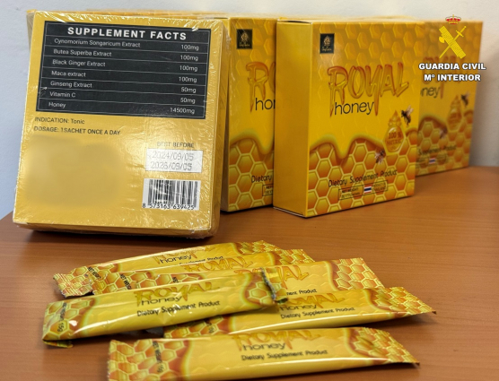 La Patrulla Fiscal i Fronteres (PAFIF) de la Guàrdia Civil, amb seu a Gavà, ha liderat una investigació que ha culminat amb la investigació d'una persona per un delicte contra la salut pública. L'operatiu ha permès retirar del mercat sobres de mel de la marca Royal Honey que contenien sildenafilo, el principi actiu utilitzat en medicaments per a la disfunció erèctil com la coneguda Viagra.