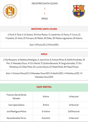 Els blaugrana havien estat derrotats en les dues darreres finals pels colomencs i en aquesta ocasió van superar de manera clara el conjunt colomenc. L’Indústries va arrencar bé el partit, i en el minut 3 Puigvert va avançar el seu equip. Els blaugrana van saber capgirar el resultat amb un gol d’Antonio i un altre de Touré, tots dos des de fora de l’àrea, i es va arribar al descans amb un ajustat 1-2.