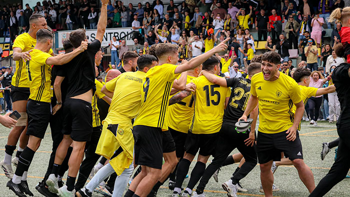 L’equip de Javi Calvo va certificar l’ascens matemàtic al camp del Santboià on es va imposar per 0-1 i ja acumula tres de consecutius