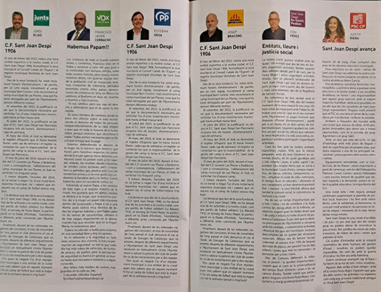El Club de Futbol Sant Joan Despí 1906 ha lamentat, a través d’un comunicat, que en el darrer Ple Municipal celebrat recentment, el grup socialista (PSC), va ser “l'únic partit que va votar en contra d'una moció conjunta presentada per ERC Junts i PP. Aquesta moció sol·licitava que el nostre club pogués disposar d'horaris d'entrenament i de joc per als partits de lliga en qualsevol dels dos camps municipals de la ciutat". Segons l’entitat esportiva santjoanenca la proposta, que buscava garantir la igualtat d'oportunitats per l'accés equitatiu a les instal·lacions esportives municipals, va rebre els suports de tots els grups presents al Ple, excepte del PSC, que va votar-hi en contra.