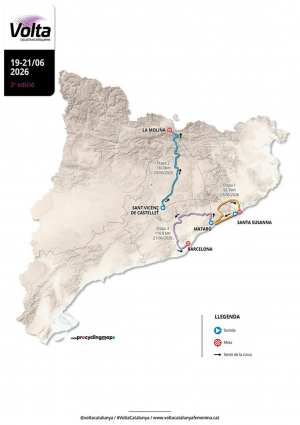 Per la seva banda, la Volta femenina es consolida fermament en el calendari internacional. La cursa de les dones es trasllada als dies 19, 20 i 21 de juny, buscant el màxim nivell competitiu (prova de categoria internacional UCI 2.1). L'objectiu és mantenir el prestigi aconseguit amb les victòries de grans icones com Marianne Vos i Demi Vollering. En total, seran deu dies de ciclisme d'alt nivell recorrent tot el territori català. El Baix Llobregat tindrà protagonisme a la darrera jornada (Molins de Rei acollirà un esprint intermedi) i passarà també per diferents municipis. Una etapa de 110,8 quilòmetres amb sortida a Mataró i arribada a l’Avinguda Maria Cristina de Barcelona.