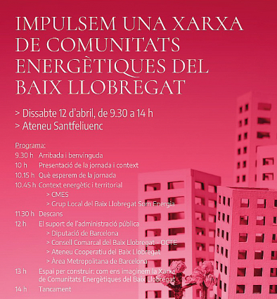 Aquesta iniciativa busca consolidar les comunitats energètiques com una alternativa estratègica per promoure un model energètic més just i sostenible al territori. Els organitzadors subratllen el gran potencial que aquest model té al Baix Llobregat per transformar la manera en què es produeix i es comparteix l’energia.