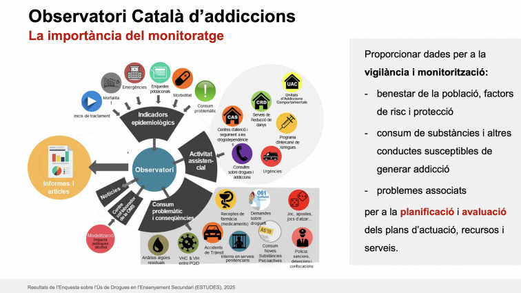 Entre les mesures més immediates destaca la creació de l’Observatori Català d’Addiccions (OCA), que permetrà un monitoratge més àgil de les noves tendències de consum per adaptar les polítiques públiques a una realitat juvenil cada cop més digital i menys vinculada a les substàncies tradicionals.