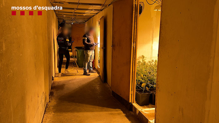 Els Mossos d’Esquadra de la Divisió d’Investigació Criminal (DIC) de la Regió Policial Metropolitana Sud van desarticular, el passat 11 de març, un entramat criminal relacionat amb la producció i tràfic de drogues amb plantacions de cànnabis conreades en naus industrials i domicilis de l’àmbit metropolità de Barcelona. Concretament, els Mossos d’Esquadra van detenir dotze homes i una dona d’entre 20 i 52 anys en les set entrades i registres efectuats a les localitats de Santa Coloma de Cervelló, Vallirana, l’Hospitalet de Llobregat, Sant Feliu de Llobregat, Granollers, Santa Coloma de Gramenet i Barcelona. En les diferents ubicacions els agents van intervenir més de 5.000 plantes de cànnabis, 18 kg de marihuana, 4 armes de foc i munició diversa.