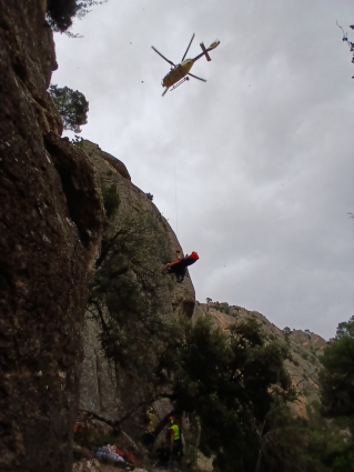 En arribar al peu de la via, els equips de rescat han trobat un dels escaladors en aturada cardiorespiratòria. Els efectius del GRAE i el SEM han iniciat les maniobres de reanimació cardiopulmonar (RCP) fins a aconseguir estabilitzar-lo. Simultàniament, s’ha atès la segona víctima, que presentava lesions de molta gravetat.